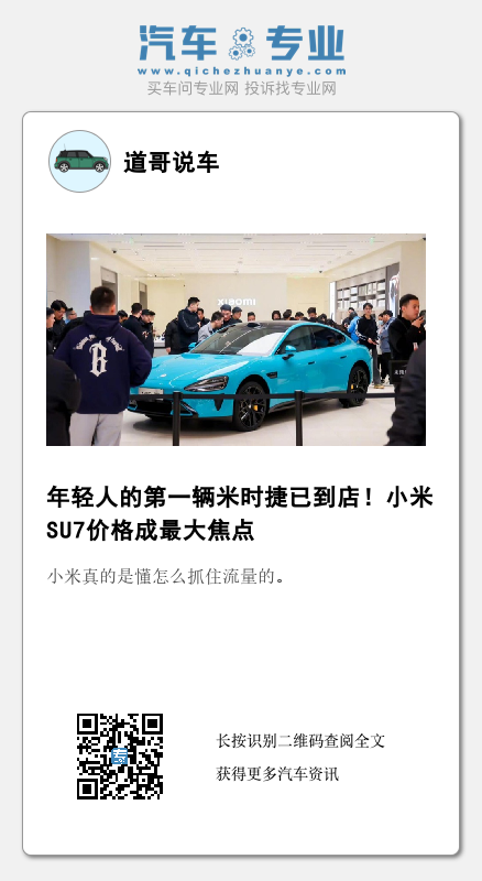 如此一来,小米SU7的价格真成最大悬念了。发布会倒计时还剩两天,一切只待3月28日到来,《财圈社&道哥说车》将持续关注。