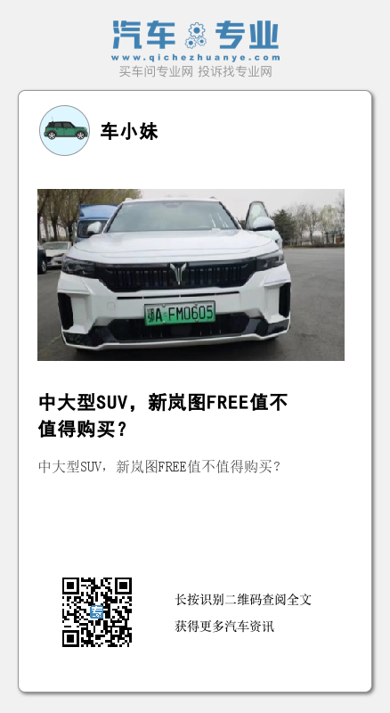 对于一台中大型SUV而言,大家关注更多的是好不好开或者这么大尺寸的SUV好不好停车以及目前的政策如何值不值得购买等?小编今天下午对这台新岚图FREE(图片|配置|询价)进行试驾,从以下几个方面进行逐一分享,希望对你的购车带来一些指导性的意见。
