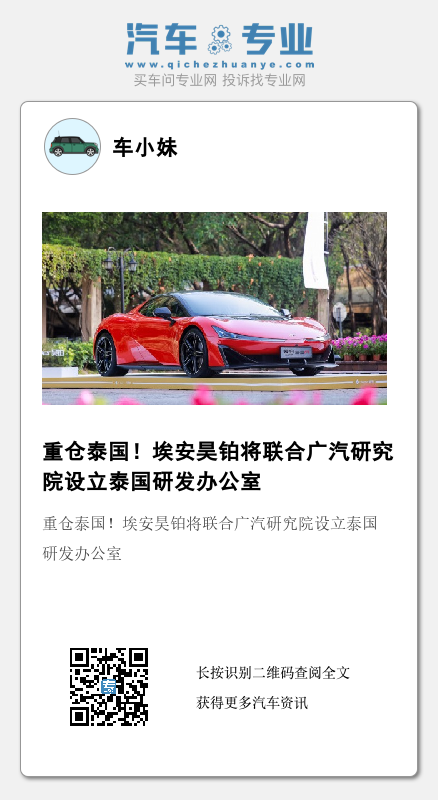 3月26日,据埃安昊铂官微消息显示,其计划联合广汽研究院,在4月设立泰国研发办公室。