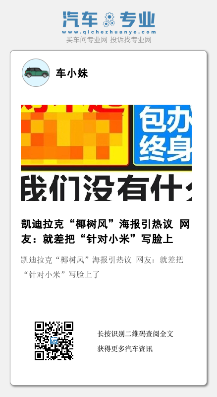 对于凯迪拉克另类宣传海报,网友明眼一看就知道是在针对小米SU7,有网友表示,“就差把针对小米汽车写在脸上了”。