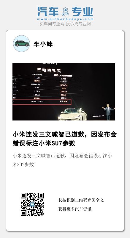 对此,小米官方随即发表声明称:智己对小米SU7 Max关键参数进行错误标注,造成极其严重的负面影响,并指出小米SU7 Max前后电机均为SiC,这确保了小米SU7 Max出色的性能和续航能力。同时要求智己公开澄清并道歉。