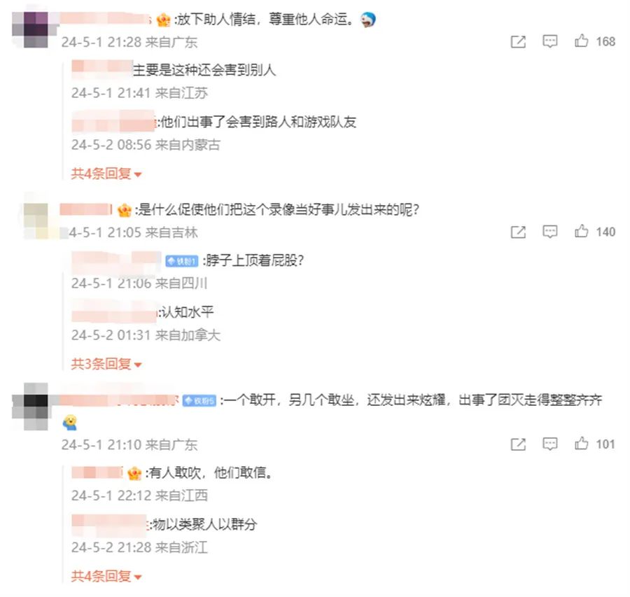 攻击性更强的网友则是表示,“一个敢开,另几个敢坐,还发出来炫耀,出事了团灭走得整整齐齐。”“死一死就长记性了。”“自己想死干嘛还要带上孩子一起,真的不怕发生不测吗?”