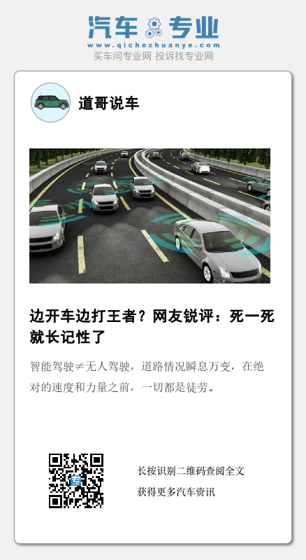 博主“百车全说三刀”同样对这种视频的引导性表示担心,“这种找骂的行为,大部分人是知道对错的。但怕就怕在有的人真的相信这车可以自动驾驶,掉以轻心是导致事故的直接原因。”