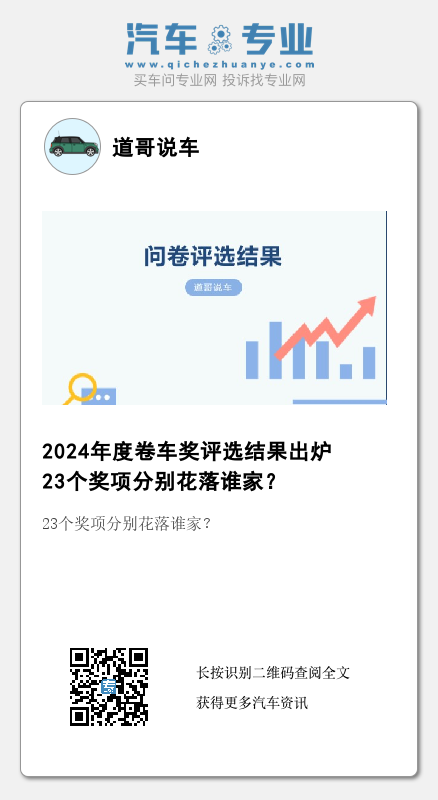 为此,《财圈社&道哥说车》编辑盘点了2023年4月—2024年4月的全新车型,以及车企在营销、技术、服务等方面的表现,并设置了“卷车奖”,在北京车展4月26日-27日期间,现场邀请逛展消费者参与问卷投票,两天的时间内共收集到了1013份样本数据,现将23个奖项投票结果公布如下: