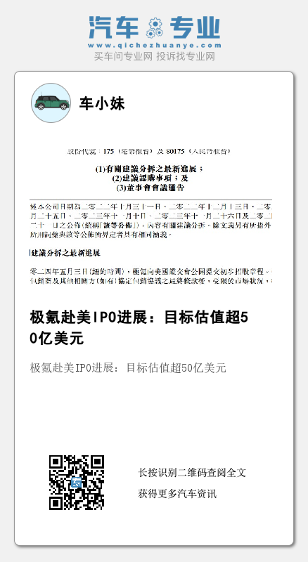 2023年11月9日,极氪正式向美国证券交易委员会(SEC)公开提交了首次公开募股招股书。极氪将在纽约证券交易所上市,股票代码为“ZK”。