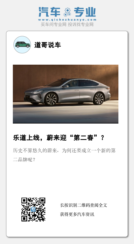 【文/财圈社&道哥说车 麻建宇】蔚来的子品牌乐道可能就要来了!