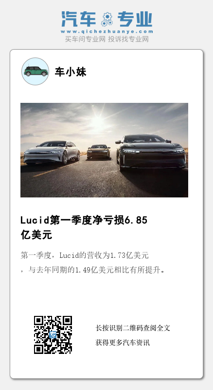与去年同期7.8亿美元的净亏损相比,今年第一季度Lucid的净亏损有所收窄,但该公司股价在5月6日盘后交易中依然下挫7.5%,跌至每股2.82美元。