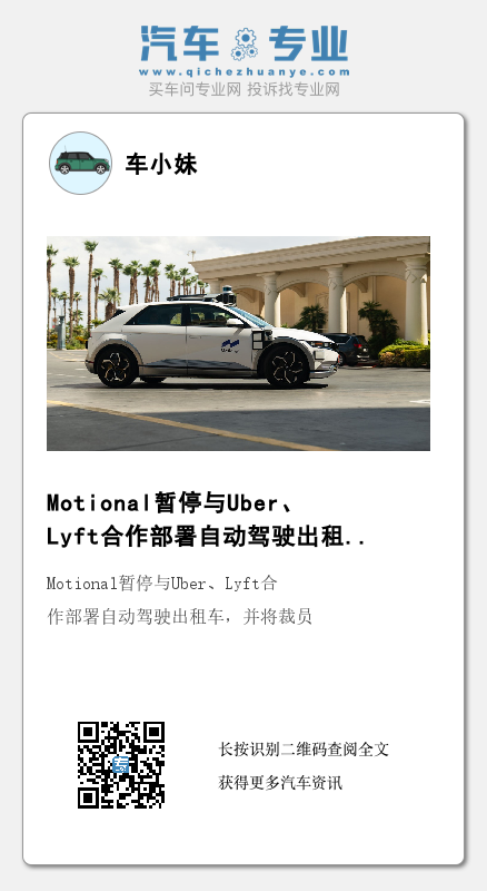 据路透社报道,5月7日,自动驾驶技术公司Motional表示,其将暂停与打车公司Uber和Lyft部署自动驾驶出租车,而且作为重组过程的一部分,该公司将裁员以专注于技术开发。