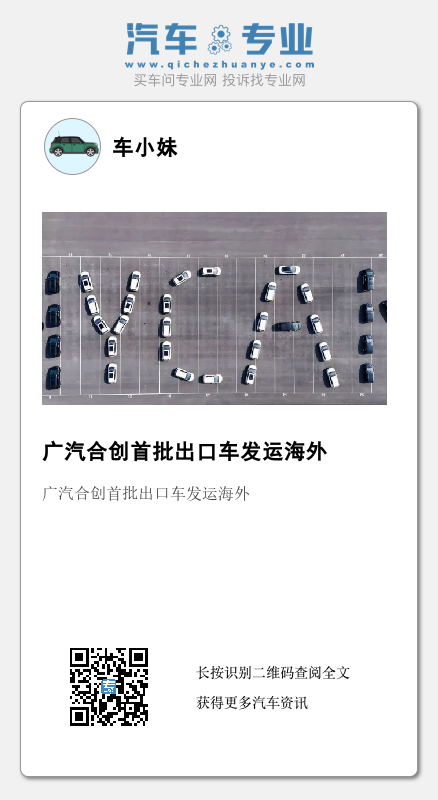 官方表示,作为广汽集团旗下的高端新能源品牌,广汽合创正加速推进全球化战略,首批出口车的成功发运正是我们海外市场拓展的重要里程碑。目前广汽合创已拓展东南亚、中东以及欧洲国家等海外地区市场,致力于成为国际化新能源汽车品牌。