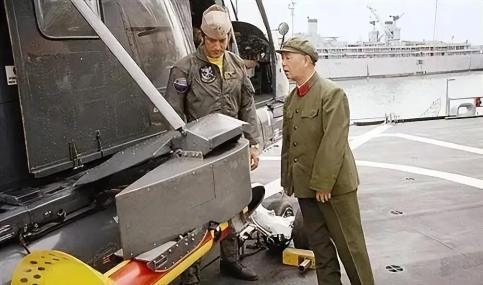 1980年5月,他曾经带队访问美国,这是他在小鹰号航母上的照片。