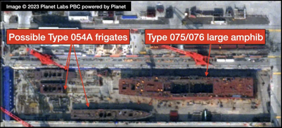 西方媒体根据卫星图推测,正在建造的076进展迅速,大概能在2024年年底之前下水。