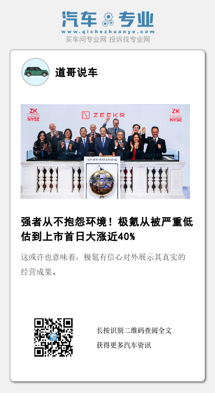 不具名证券分析师曾对《财圈社&道哥说车》编辑表示,IPO对于一个企业的核心增持效果在于规范的公司治理架构。就极氪而言,在美股上市,极氪未来需要将公司相关信息、动向都置于市场的放大镜之下,这对极氪的财务、管理、产品、技术等多个层面尽皆提出了更高的要求。当然,这对于极氪来说也是一次机会,正如安聪慧所言,极氪将以上市为契机,进一步升级治理结构,实现全球合规、透明的可持续发展。