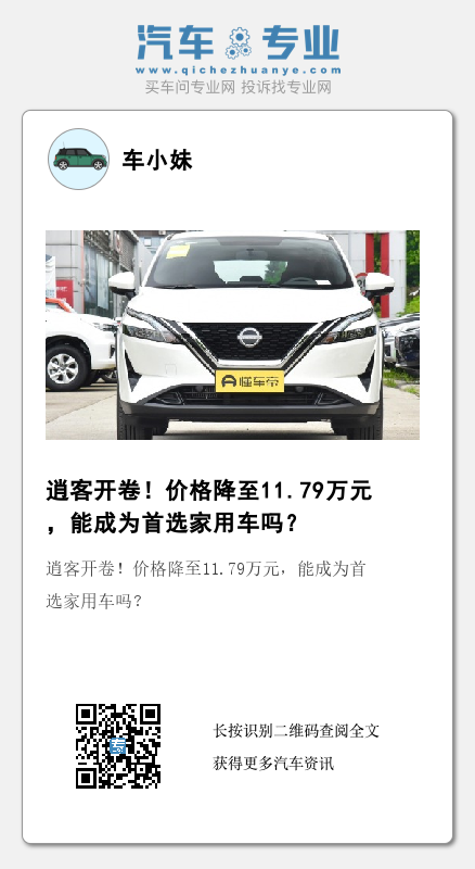 如果你正在寻找一款性价比较高、空间也较为宽敞且可靠的紧凑型SUV,那么你可以考虑一下逍客(图片|配置|询价)经典2.0L智享版。据懂车帝的报价显示,这款车型现在的价格已经降至11.79万元。那么,它的实际表现如何呢?接下来,小编带你了解一下。