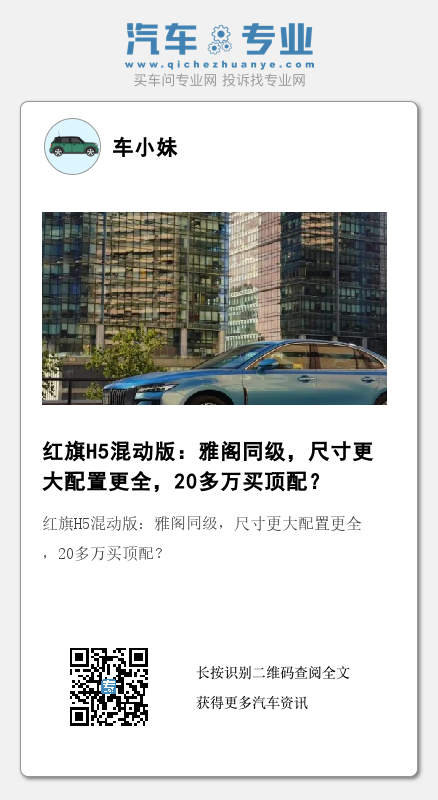 丰田凯美瑞、本田雅阁,在国内20多万的混动中型车市场中有着不可取代的位置,这是不争的事实。不过随着技术的放开与中国车企技术的突破,混动不再是日本品牌车型一方独大,吉利、长城、比亚迪相继都交出了不错的成绩单,而素有“共和国长子”之称的红旗自然不能落伍。本文就给各位带来一款红旗在混动领域的全新力作——全新红旗H5(图片|配置|询价)(图片|配置|询价)混动版。