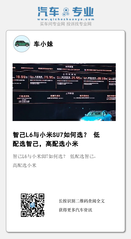 而通过以上对比,也说明了智己L6是有实力与小米SU7一战的。尤其是入门车型笔者认为智己L6的性价比更高,当然如果是顶配车型,可能选小米SU7的会更多。