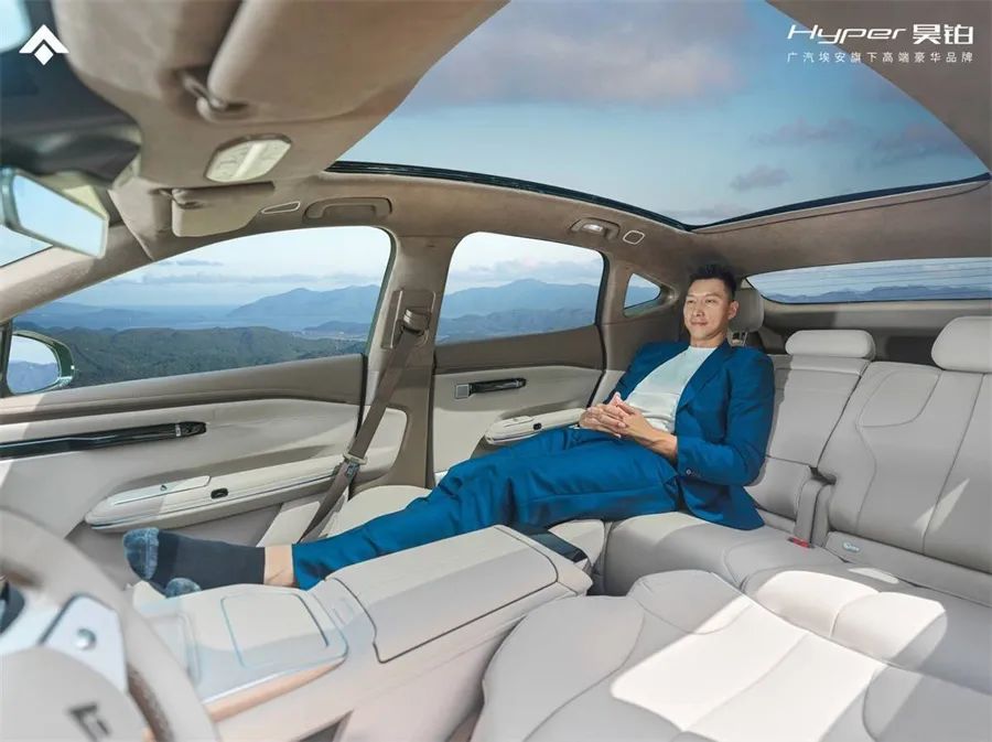 从续航和动力综合表现来看,昊铂HT在CLTC纯电续航里程表现方面占据明显优势。并且得益于800V电压平台的加持,在快充时间上也大幅领先特斯拉。综合动力数据表现也更胜一筹。在空间上,昊铂HT也要整体比特斯拉Model Y大一圈。为了凸显空间优势,昊铂HT2023首发款特地邀请了易建联作为品牌代言人。2米12的易建联轻松坐进车辆后排,空间体验瞬间遥遥领先。