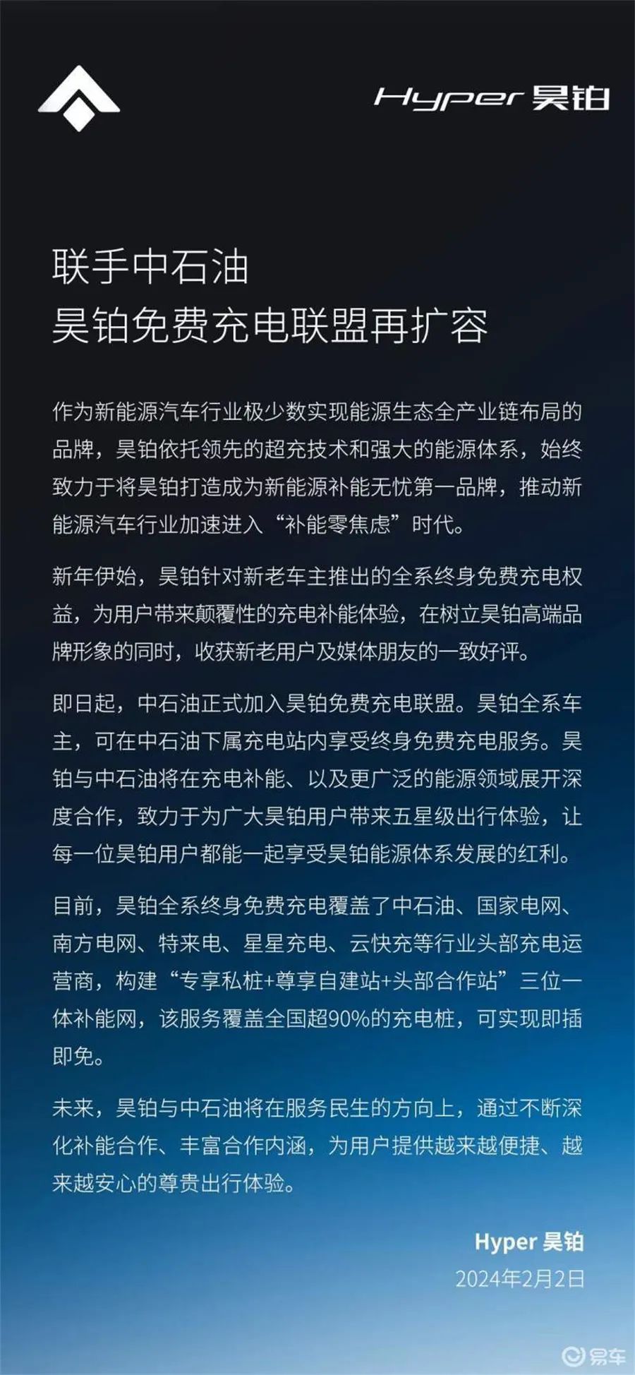 不仅如此,我们还搜罗到了昊铂的“隐藏彩蛋”。今年年初,昊铂正式推出全系终身免费充电权益时引起的全网热议。当市场还在为以往企业宣传的“附加条款”和“适用范围”苦恼时,昊铂本次权益放送覆盖了全系新老车主。每台车每年2200度的免费充电额度足够让车辆行驶10000公里,基本上覆盖了大多数用户的使用需求。