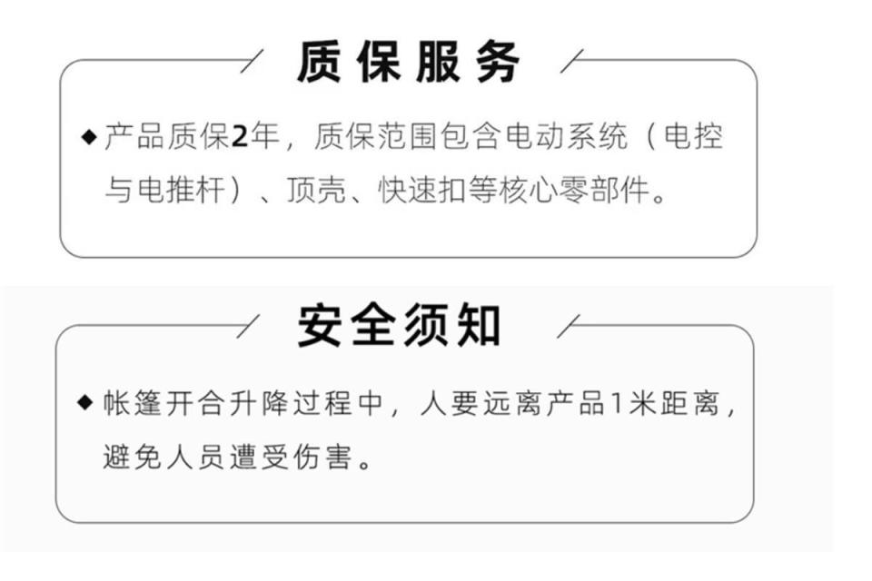 长城炮APP关于“山海居”的介绍页面,安全须知一栏中写道:“帐篷升降过程中(升降或闭合),严禁进入帐篷内部进行操作,待升降完成确认无异常后方可正常使用。”