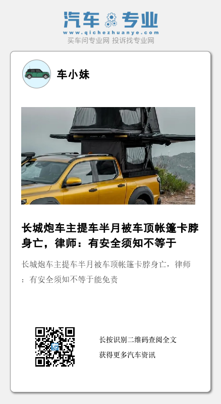 “有安全须知不等于能免责。”朱雪律师表示,长城炮APP和秋野地微信公众号对帐篷升降过程中的操作安全问题所作的提示,并不构成对受害车主的直接、有效、明确具体的提示。面对“山海居”露营帐篷这样可能会产生人身安全问题的产品,车商和帐篷设计商不能寄希望于车主在他们的APP、微信公众号上主动寻找安全提示,而应设计出让车主在操作中无法回避的如语音、确认按键等提示。