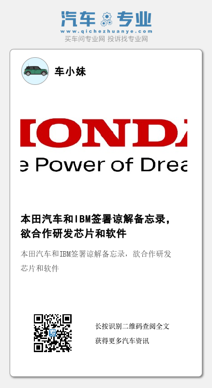 据日经网报道,5月15日,本田汽车公司和IBM宣布已签署谅解备忘录,将为未来汽车合作研发芯片和软件等下一代计算技术。
