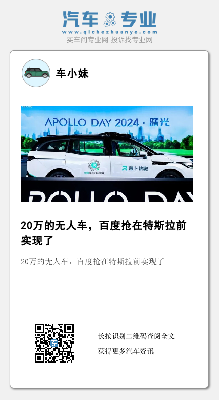 按照此前马斯克的官宣,今年8月8日特斯拉将正式发布Robotaxi,而抢在特斯拉之前,百度推出了价格只有20万出头的Robotaxi。