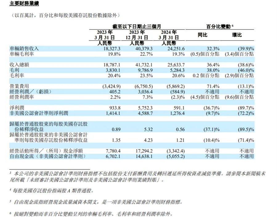 比如:总收入较2023年第四季度的417亿元环比下滑38.6%。经调整净利润较2023年第四季度的约46亿元下降72.2%。当然,最扎眼的还是理想汽车的两项“正转负”的数据,包括: