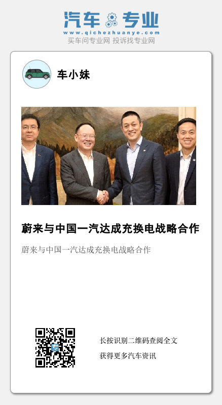 据悉,蔚来与中国一汽将在充换电领域开展全方位、多层次的深度战略合作,在包括电池技术标准建立、可充可换电池车型研发、电池资产管理及运营、充换电补能生态服务网络建设及运营、电池产业采购与配套等领域深化长效合作机制,建立起长期、稳定的战略合作伙伴关系。