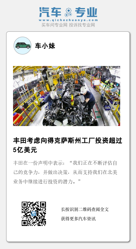 丰田在发给外媒的一份电子邮件声明中表示:“我们正在不断评估自己的竞争力,并做出决策,从而支持我们在北美业务中继续进行投资的潜力。”该公司没有提供有关这笔投资的更多细节。