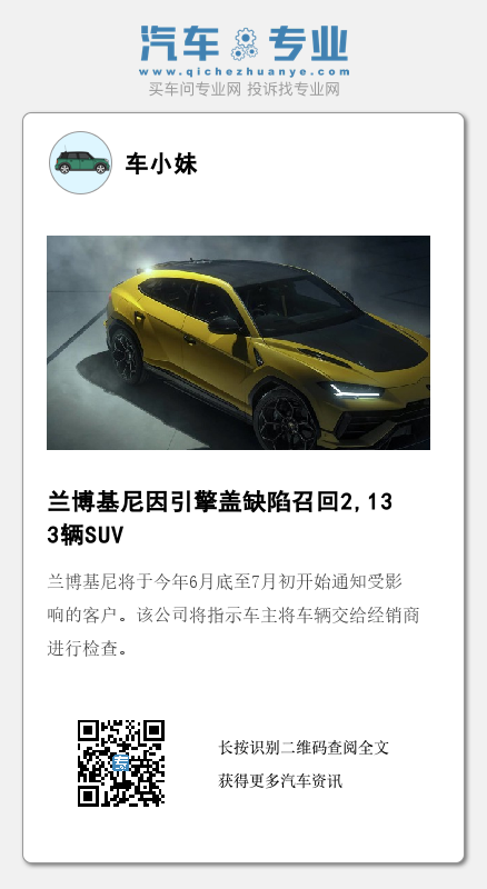 Urus是兰博基尼全球最畅销的车型,在美国的起售价超过20万美元。该公司表示,尚未收到与此问题有关的撞车事故或人员伤亡报告。