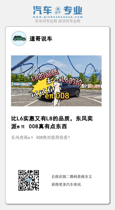 比L6实惠又有L8的品质,东风奕派eπ 008真有点东西