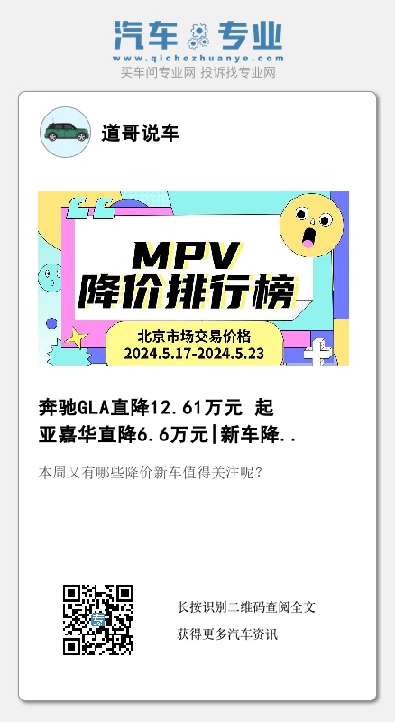 关注度较多的紧凑型车方面,榜单前五车型和降幅均与上周保持一致,其中,奔驰B级降幅最高,达到11.01万元,紧随其后的奔驰A级和宝马1系直降10万元同样值得关注;备受关注的SUV车型方面,入榜车型和降幅与上周相比变化较大。虽然榜单前三车型依旧没有发生改变,但是降幅均有所调整,其中,揽胜星脉再降0.01万元,揽胜极光再降0.11万元,发现运动版再降0.01万元,排列第四位的被奔驰GLB占据,较上周再降0.1万元,上周未出现的奔驰GLA直降12.61万元,排在第五位;近年来关注度越来越高的MPV车型方面,最值得关注的是起亚嘉华这款车,直降6.6万元,罕见入榜单。