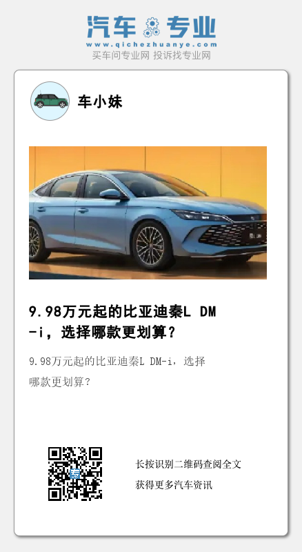 比亚迪秦L DM-i(图片|配置|询价)正式上市,9.98-13.98万元指导价过于炸裂,加上第五代DM混动的超强表现,亏电油耗2.9L,综合续航超2000km,其他友商估计彻夜难眠,比亚迪有技术也有定价权,合资中级车估计要含泪降价了。