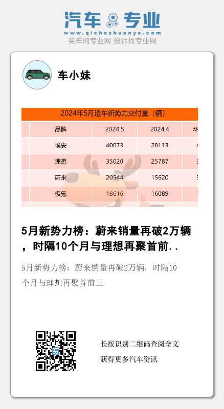 5月,蔚来交付新车20,544台,同比增长233.8%,环比增长31.5%,创历史新高,时隔10个月与蔚来再次聚首。