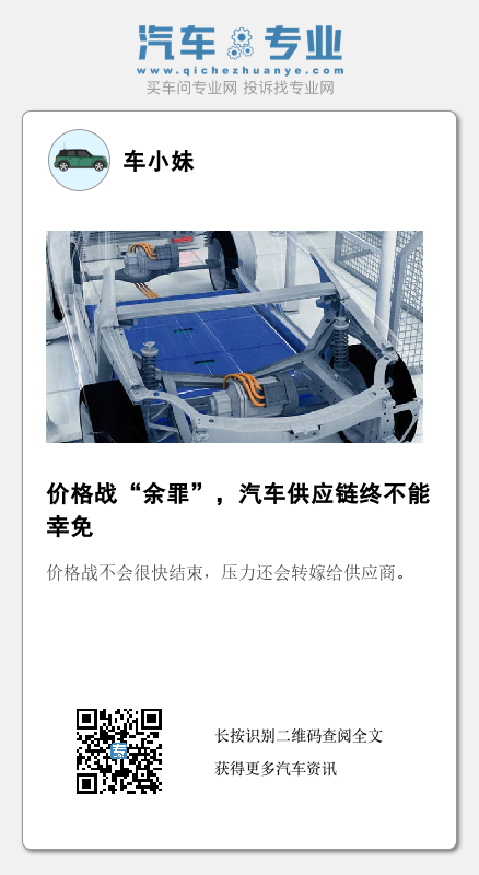 终局也可想而知,供应链中的弱者将面临被踢出游戏的高风险。价格战延续之下的“余罪”,汽车供应链终不能幸免。