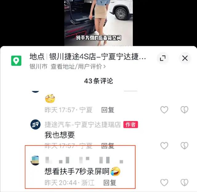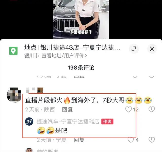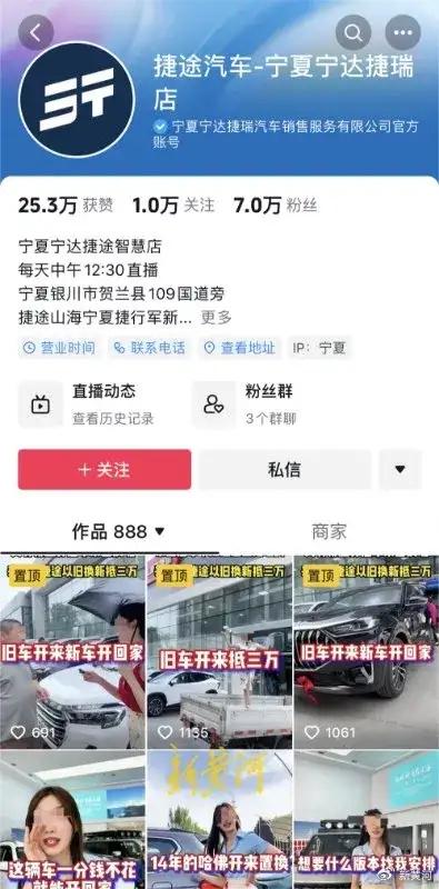 据了解,视频中的女主播叫“冰冰”,一般都在抖音账号“捷途汽车-宁夏某店”出镜带货,网上疯传的不雅视频,疑似出自该账号的直播。