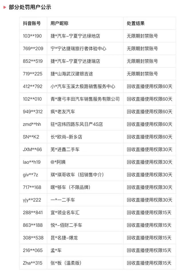 抖音直播针对汽车行业“擦边”营销问题持续进行全面整治,2024年4月至今共处罚违规账号2632个,对存在严重违规行为的582个账号回收了直播权限,其中无限期封禁账号24个。