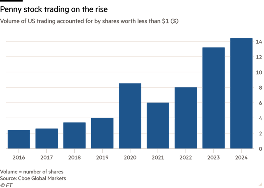 一家废金属商和一家只卖出过四辆电动车的制造商位居所谓“便士”股票榜首,这些股票的交易量超过了特斯拉和苹果等大公司,令一些分析师警告市场可能过热。