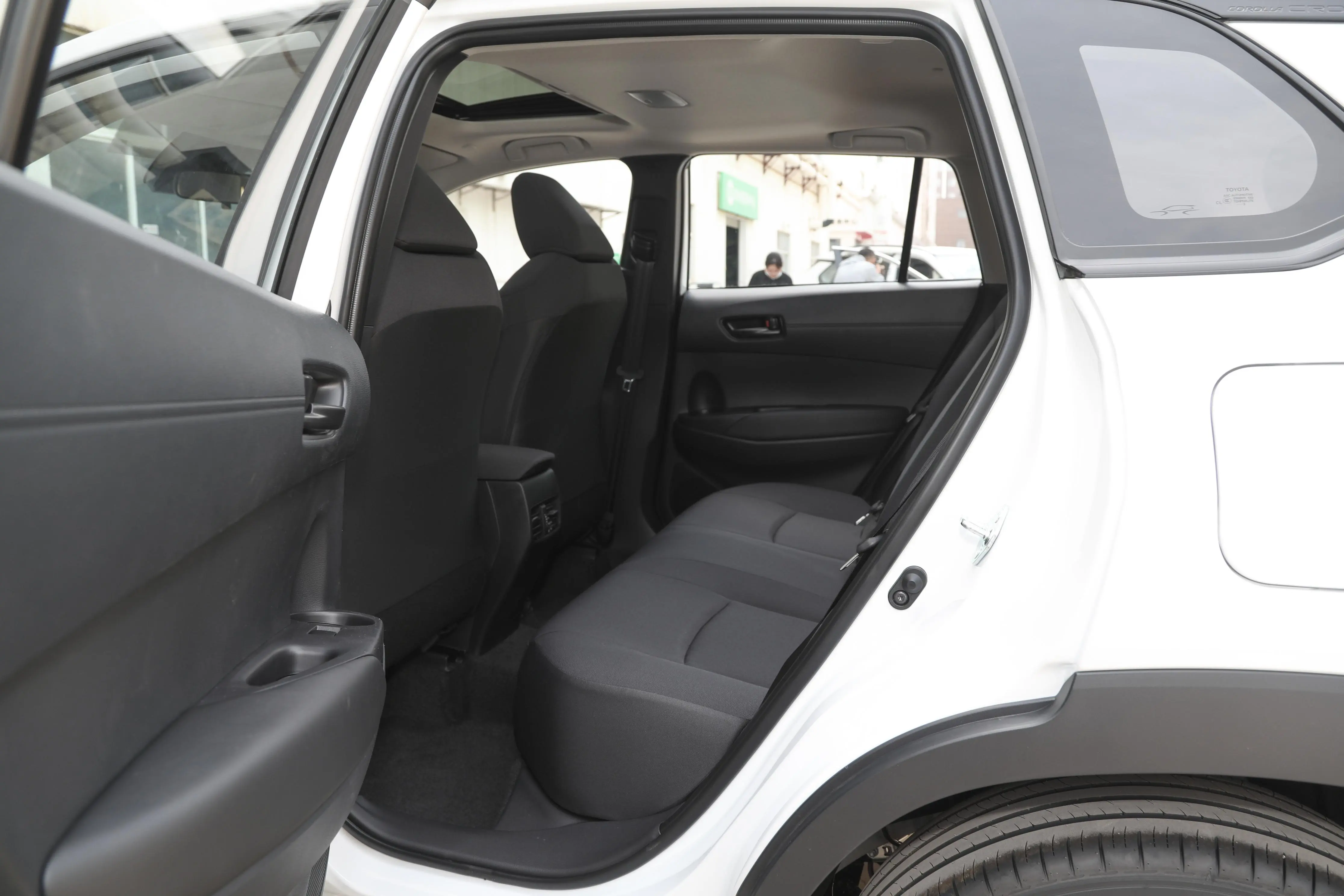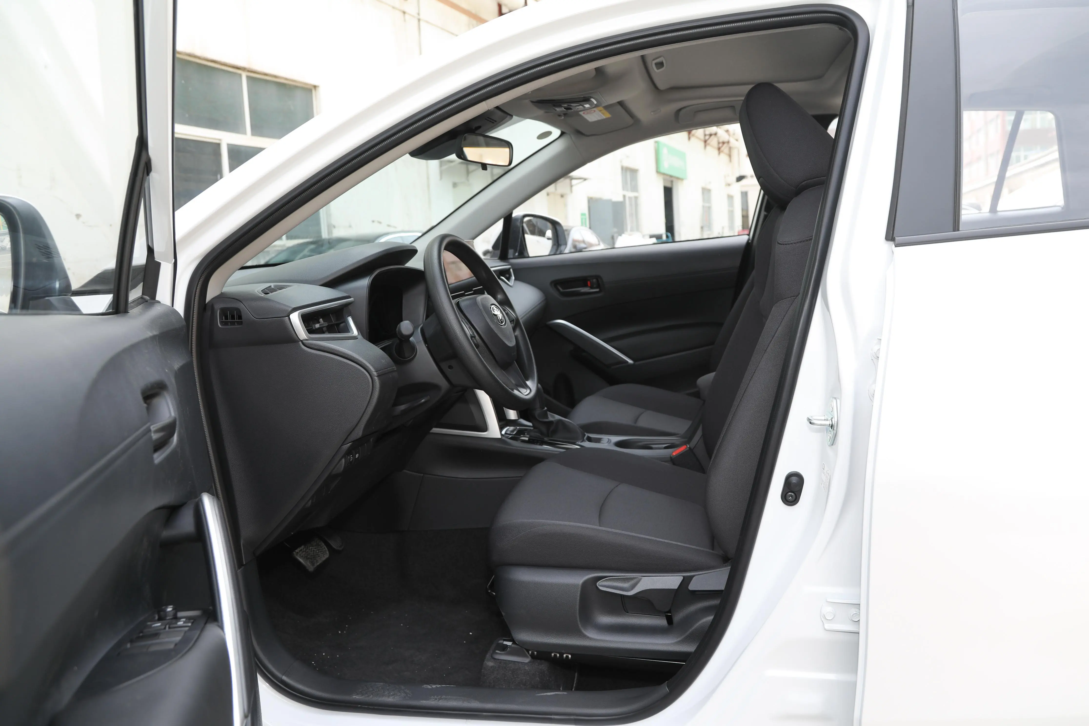 车身长x宽x高4460x1825x1620mm,轴距2640mm。看参数,不算特别诱人。空间上,丰田还是挺能整活的。身高175cm的男士坐在前排,调到合适的位置。腿脚很宽松,是不是?就这样左右摆动腿部,也遇到阻挡没有受限的感觉。整个司机周边做得挺整洁的。伸个手去点一下屏幕或者档把什么的,也不会说碰到什么部件。前排的空间感也好,人体工学也好,都挺不错的。