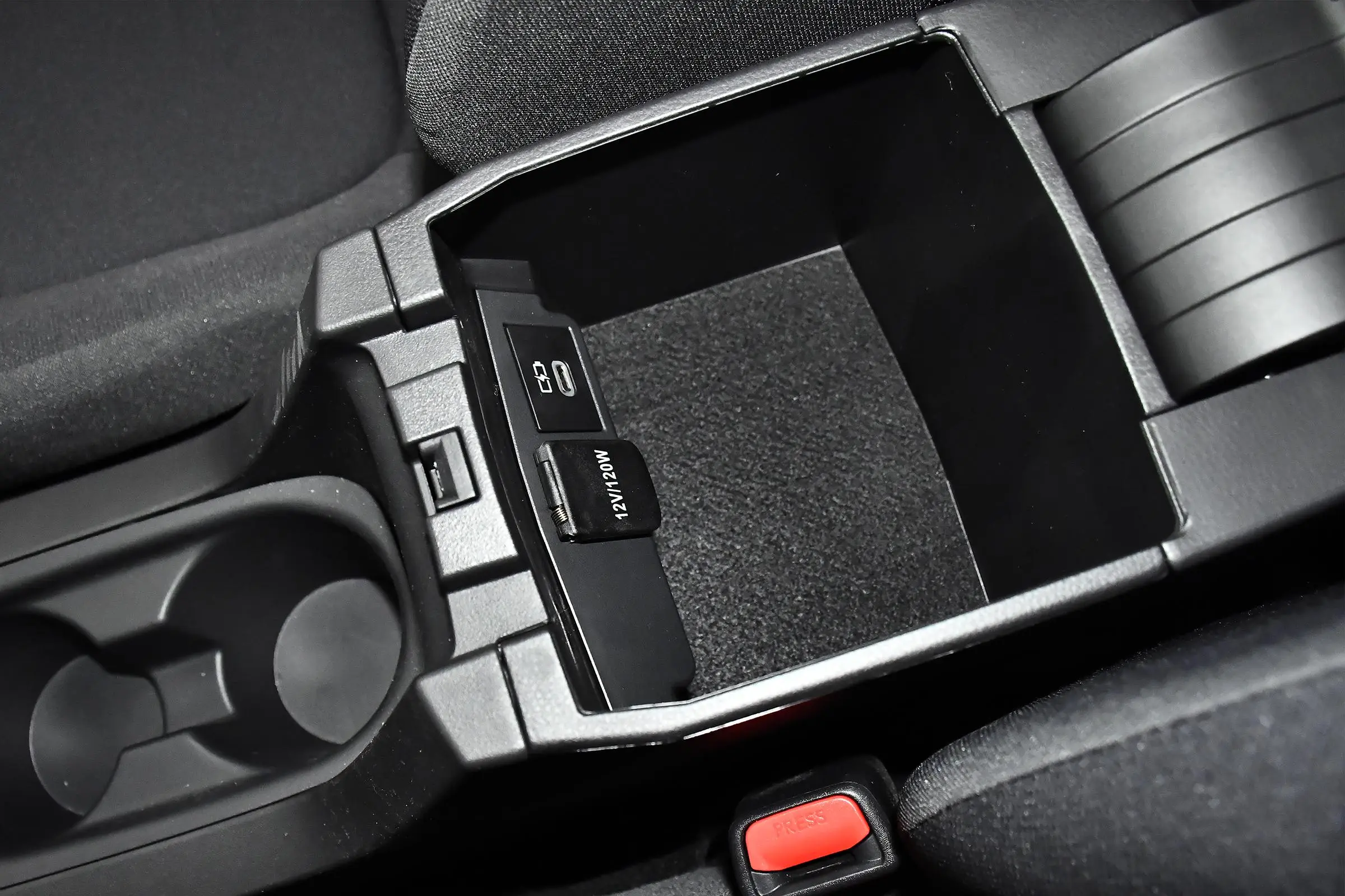 储物空间这一块做得也挺好的。扶手箱挺能装的。够深够规整,底部还有防滑处理。后排也有一个专门的杯架。
