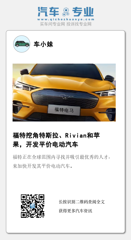 据外媒报道,随着电动汽车的价格竞争日益激烈,在过去的几个月里,福特已从特斯拉、Rivian、苹果和Lucid聘请了一些优秀的电动汽车工程师,来加快开发其平价电动汽车。