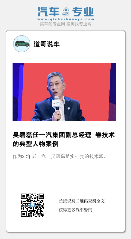 公开资料显示,吴碧磊于1970年出生,是中国一汽自己培养的技术管理型高管,其升迁之路并没有太多“传奇”,从最基础的产品开发做起,从基层到中层再到高层,可谓一步一个脚印。