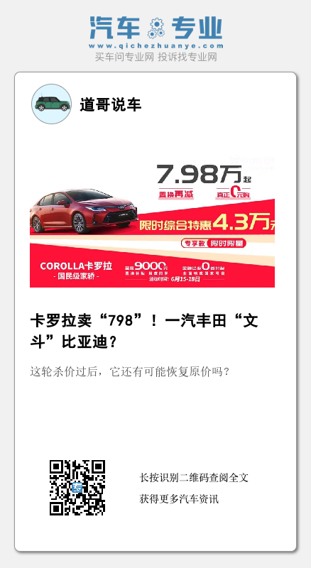 张翔对《财圈社&道哥说车》编辑表示,以前丰田为代表的日系品牌主打省油,如今比亚迪推出的秦L等在续航以及能耗等方面甚至已经超过了曾经的丰田车型,此次降价也有借价格优势抗衡比亚迪等车企的因素。