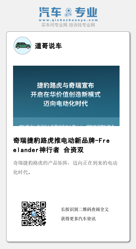 【文/财圈社&道哥说车 麻建宇】“股东双方共同开发电动化产品授权合资企业奇瑞捷豹路虎生产,同时也独立于捷豹路虎四大品牌家族之外,捷豹路虎依然坚持走新现代豪华路线”,捷豹路虎相关负责人对《财圈社&道哥说车》编辑表示,“Freelander神行者”品牌是捷豹路虎与奇瑞创新性的合作模式,在国内属于首个。