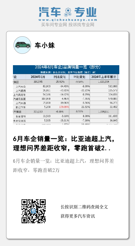 据盖世汽车统计,对比5月,6月的确有不少车企环比上涨,但也有部分表现下滑。且如果对比去年同期,则有近20家车企/品牌呈现负增长。