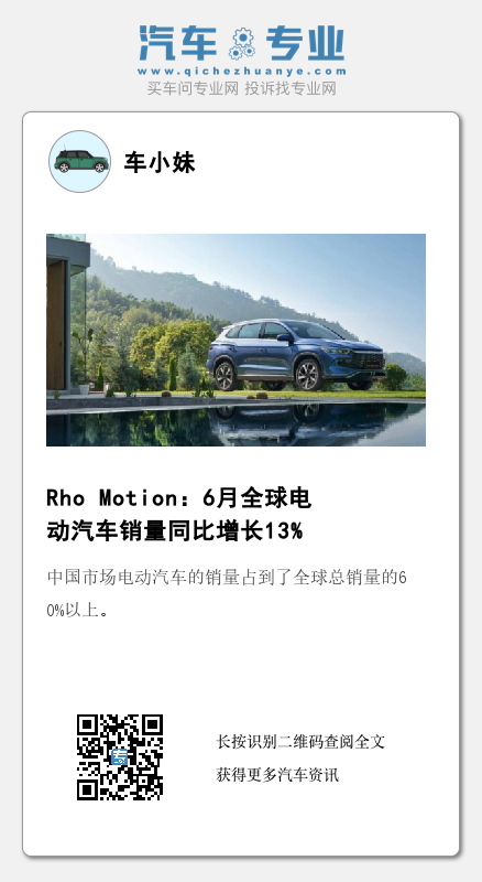 Rho Motion数据经理Charles Lester透露,得益于电动汽车供应量的增加以及比亚迪强劲的销售业绩,使得今年上半年电动汽车在中国的市场份额有所增加,也因此,中国市场电动汽车的销量占到了全球总销量的60%以上。