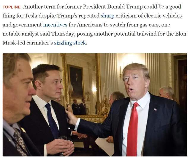 这是 4 天前,《福布斯》杂志专题报道的总结,标题是《尽管特朗普的电动汽车政策很糟糕,但他当选仍有利于提振特斯拉股价》。