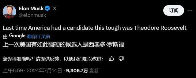 另一个印记,是马斯克昨天的一条 X 里面这样定义特朗普,「上一次美国有这么强硬的候选人,是西奥多·罗斯福」。