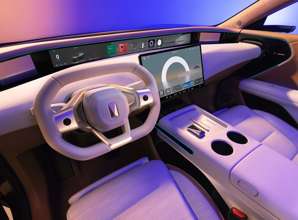 内饰方面,阿维塔07延续了家族式独有的科技、智能设计语言,给到你的视觉感前卫科幻。扁平化的方向盘、窄条幅式液晶仪表、悬浮式中控屏以及两侧电子后视镜等,车内营造的未来感、科技感非常到位。