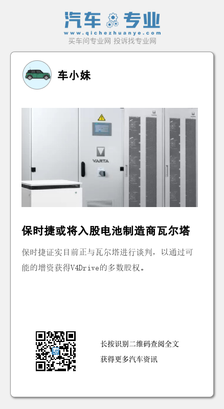 与此同时,瓦尔塔7月21日的声明显示,保时捷或将直接入股该公司。保时捷证实目前正与瓦尔塔进行谈判,以通过可能的增资获得V4Drive的多数股权。