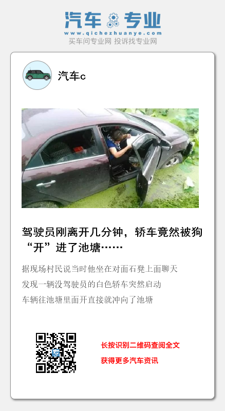 据了解,当天谭女士出门时,便将自己心爱的宠物狗抱进了小轿车。谁知,路上宠物狗一直不停的叫,谭女士分心看了宠物狗一眼,车子就冲进了路边的水田里,所幸,水田不深,水没有进到车里,谭女士也没有受伤。